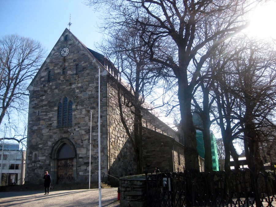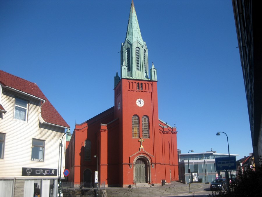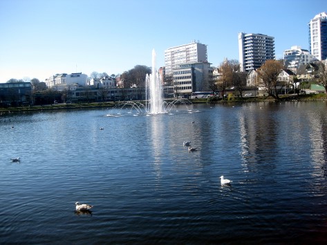 The above was taken by a rather pleasant lake with a nice fountain and, alongside, a rather sweet statue of a boy with ducks Stavanger's 12th. Century Cathedral was also adjacent to the lake